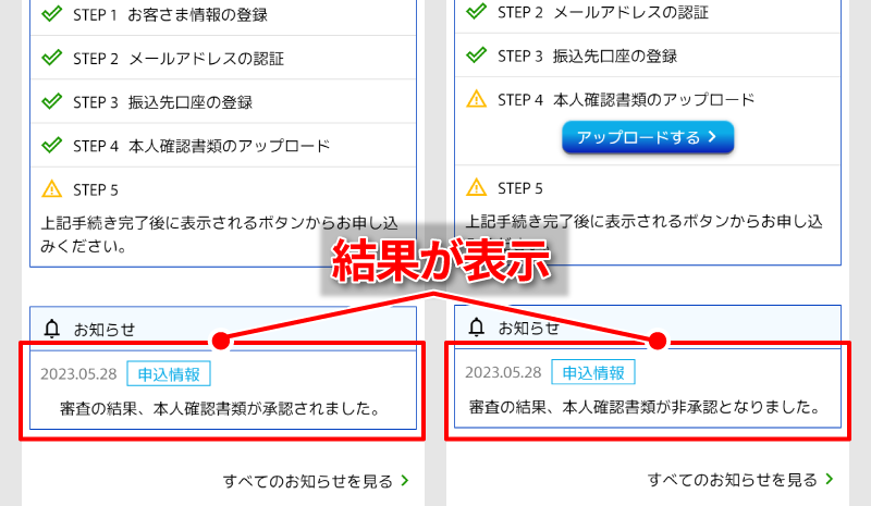 当社より「承認」の通知が届きましたら本人確認のお手続きは完了です。